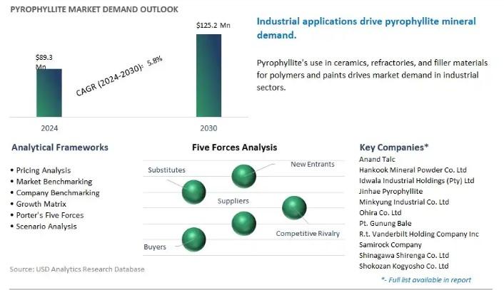 The "Pyrophyllite Market" intelligence report, just published by USD Analytics, covers a micro-level study of important market niches, product offers, and sales channels. To determine market size, potential, growth trends, and competitive environment, the Pyrophyllite Market provides dynamic views. Both primary and secondary sources of data were used to generate the research, which has both qualitative and quantitative depth. Several of the major figures the study featured Rio Tinto Group (United Kingdom), American Talc Co. (United States), Golcha Group (India), Standard Mineral Co. (India), Mineral Technologies Inc. (United States), R.T. Vanderbilt Co. (United States), Imerys (France)Get Sample Report + All Related Graphs & Charts @: https://www.usdanalytics.com/sample-request/26084