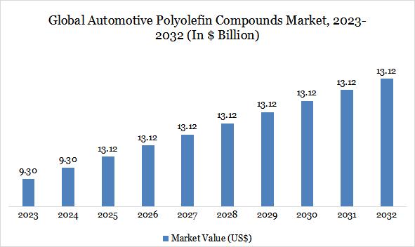 As per DataM intelligence research report "Global automotive polyolefin compounds market reached US$ 9.30 billion in 2024 and is expected to reach US$ 13.12 billion by 2032, growing with a CAGR of 4.4% during the forecast period 2025-2032."