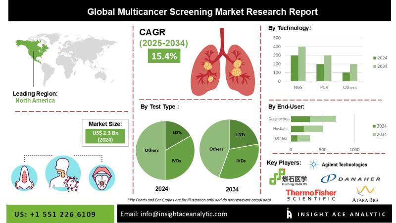 InsightAce Analytic Pvt. Ltd. announces the release of a market assessment report on the "Global Multicancer Screening Market Size, Share & Trends Analysis Report By Test Type (Laboratory Developed Tests (LDTs) and In-Vitro Diagnostics (IVDs)), Technology (Next-Generation Sequencing (NGS), Polymerase Chain Reaction (PCR), Immunohistochemistry (IHC), Fluorescence In-Situ Hybridization (FISH)), Sample (Tissue, Blood, Saliva, Buccal Swabs), Method (DNA, RNA, and Proteins), Cancer Type (Breast and Gynecologic, Gastrointestinal, Endocrine, Genitourinary, Skin, Brain/Nervous…