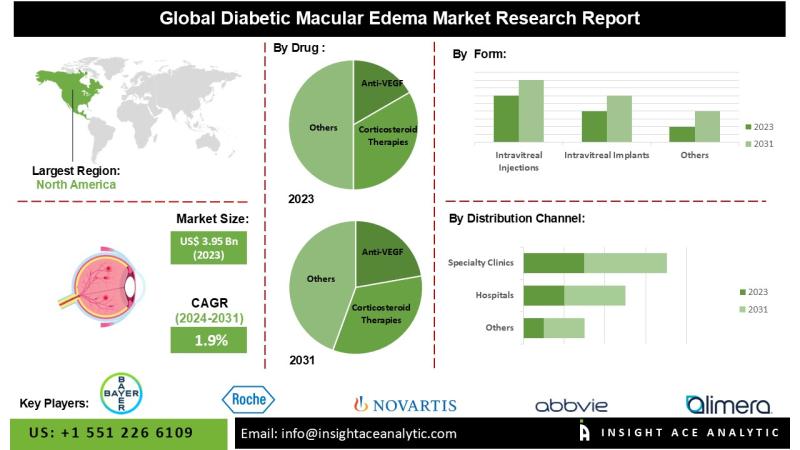 InsightAce Analytic Pvt. Ltd. announces the release of a market assessment report on the " Diabetic Macular Edema Market - (By Drug Type (Anti-VEGF (Ranibizumab (Lucentis), Aflibercept (Eylea)), Corticosteroid Therapies (Dexamethasone (Ozurdex), Fluocinolone Acetonide (Iluvien)), Others), By Form (Intravitreal Injections, Intravitreal Implants), By Distribution Channel (Hospitals, Specialty Clinics, Mail Order Pharmacies)), Trends, Industry Competition Analysis, Revenue and Forecast To 2035."