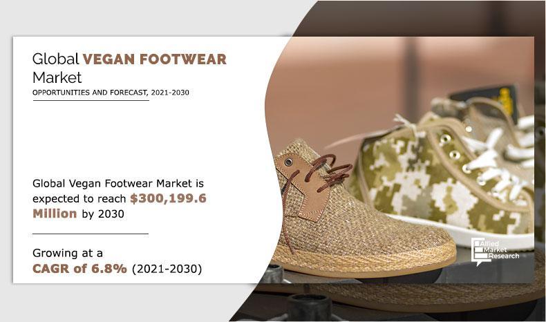 The global vegan footwear market size is expected to reach $300,199.6 million by 2030 at a CAGR of 6.8% from 2021 to 2030