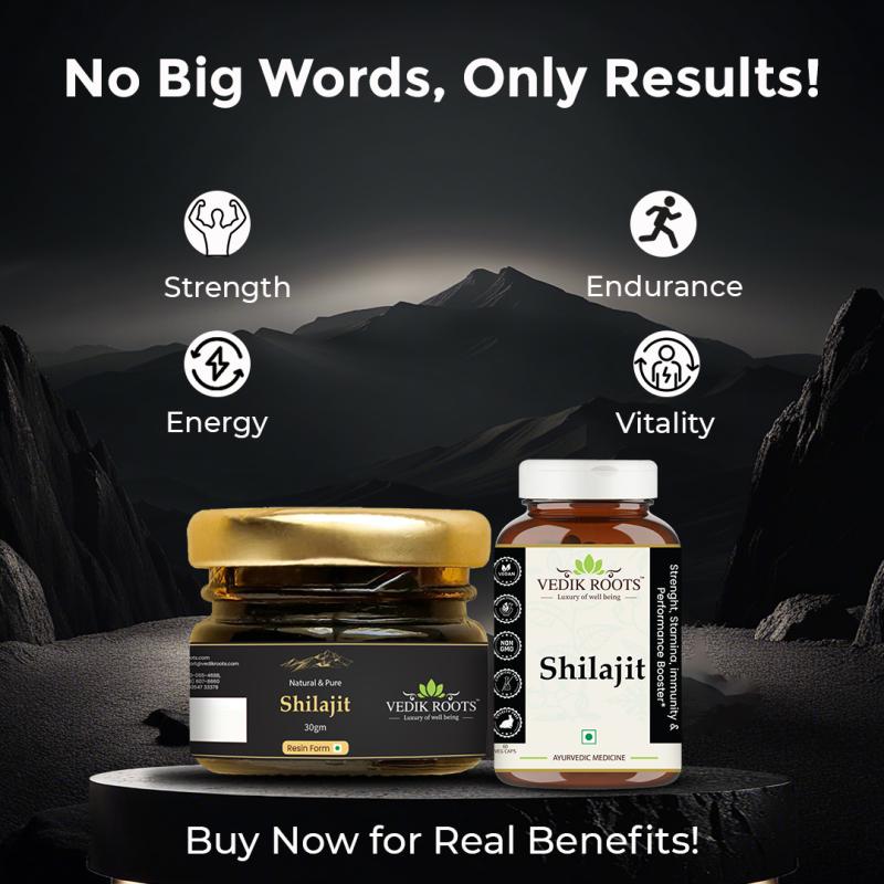 Vedikroots is committed to delivering 100% pure and authentic Ayurvedic products that cater to modern wellness needs. Our Shilajit is ethically sourced, lab-tested, and free from additives-ensuring you get only the best.