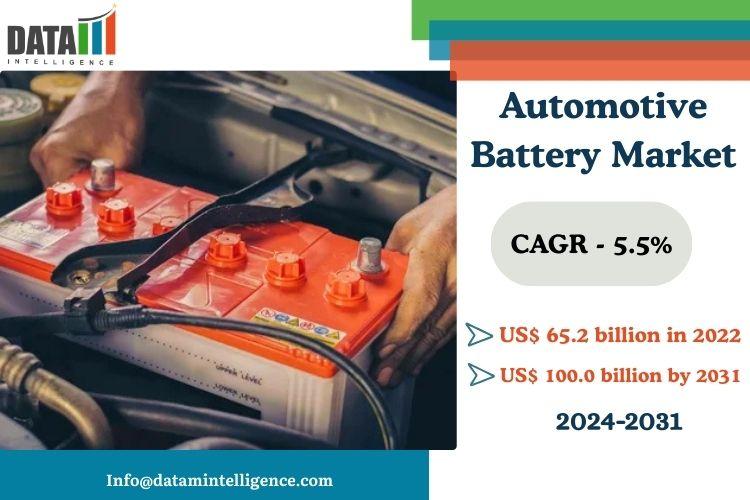 Global Automotive Battery Market reached USD 65.2 billion in 2022 and is expected to reach USD 100.0 billion by 2031, growing with a CAGR of 5.5% during the forecast period 2024-2031.
