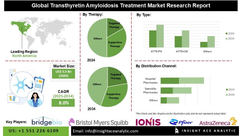 InsightAce Analytic Pvt. Ltd. announces the release of a market assessment report on the " Transthyretin Amyloidosis Treatment Market - (By Type (ATTR-PN, ATTR-CM), By Therapy (Targeted Therapy (Onpattro, Inotersen, Vyndaqel/Vyndamax), Supportive Therapy, Pipeline Therapy), By Disease Type (Hereditary Transthyretin Amyloidosis (Polyneuropathy, Cardiomyopathy, Mixed Type), Wild Type Amyloidosis), By Distribution Channel (Hospital Pharmacies, Specialty Pharmacies, Retail Pharmacies, Online Pharmacies)), Trends, Industry Competition Analysis, Revenue and Forecast To 2034."