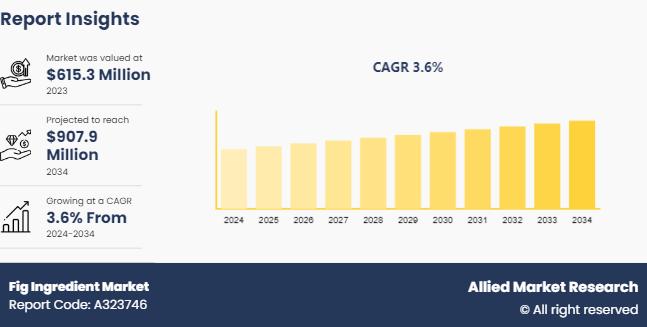 Allied Market Research published a report, titled, "Fig Ingredient Market by Type (Fig Powder and Others), Application (Food And Beverage, Cosmetic & Personal Care, Dietary Supplements, Dairy Products, Confectionary and Other), Distribution Channel (Pharmacies/Drugstores, Hypermarket/Supermarket, Direct Selling and Online): Global Opportunity Analysis and Industry Forecast, 2024-2034". According to the report, the fig ingredient market was valued at $615.3 million in 2023, and is estimated to reach $907.9 million by 2034,โฆ