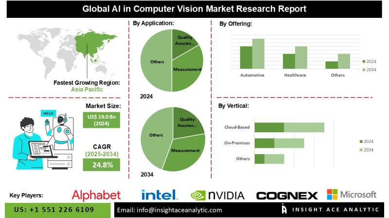 InsightAce Analytic Pvt. Ltd. announces the release of a market assessment report on the " AI in Computer Vision Market - (By Type of Component (Hardware and Software), by Type of Function (Training, Interference), by Type of Machine Learning Models (Supervised Learning, Unsupervised Learning), by Type of Deployment (Cloud-based and On-premise), by Areas of Application (Facial Recognition, Image Classification, Object Detection, Object Tracking, and Others), by Type of Product (PC-Based…