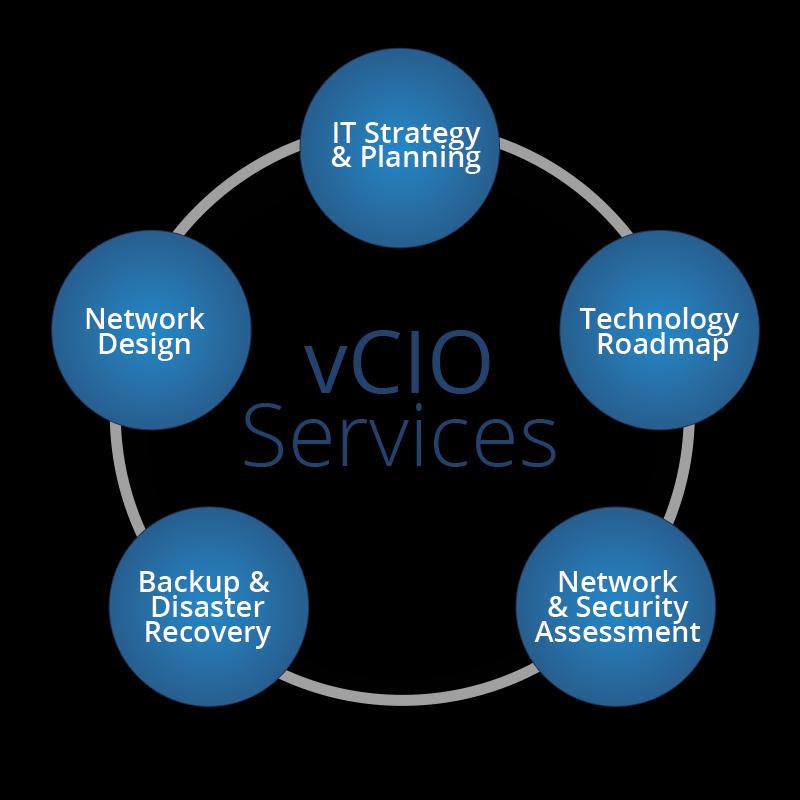 Outsourced Chief Information Officer (CIO) services that provide strategic IT leadership, technology planning, and cybersecurity management for businesses without an in-house CIO.