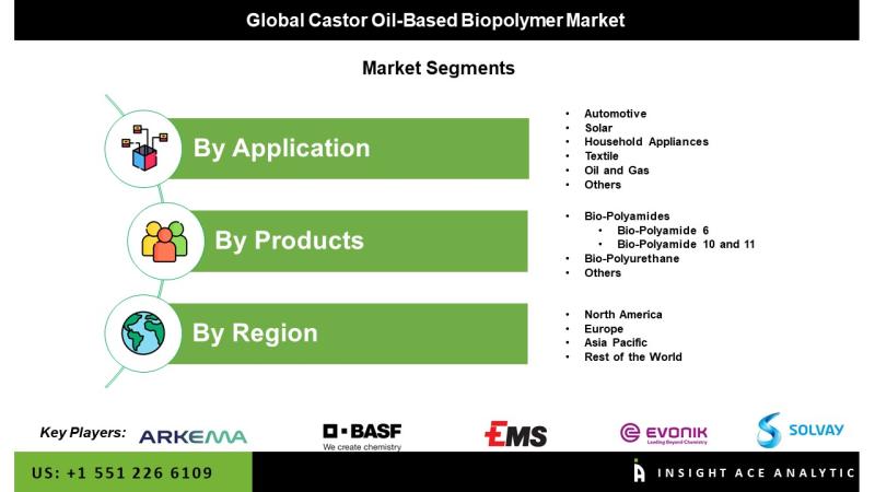InsightAce Analytic Pvt. Ltd. announces the release of a market assessment report on the "Global Castor Oil-Based Biopolymer Market Size, Share & Trends Analysis Report By End-User (Automotive, Solar, Household Appliances, Textile, Oil And Gas), Polymer Type (Bio-Polyamides (Bio-Polyamide 6, Bio-Polyamide 10 And 11), Bio-Polyurethane) And Foam (Pellets, Yarns)- Market Outlook And Industry Analysis 2031"The global castor oil-based biopolymer market is estimated to reach over USD 3140.03 million by 2031, exhibiting a CAGR of 16.06% during the forecast period.