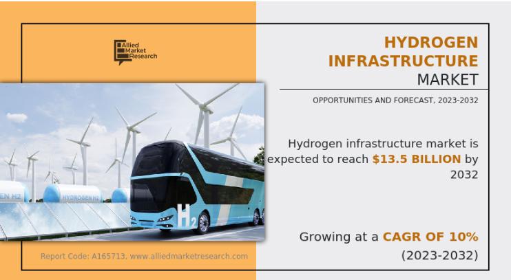According to a new report published by Allied Market Research, the hydrogen infrastructure market size was valued at $4.9 billion in 2022 and is projected to reach $13.5 billion by 2032, registering a CAGR of 10% from 2023 to 2032. The rapid expansion of hydrogen-based energy systems, rising decarbonization targets, and increasing government investments in clean energy are significantly accelerating market growth worldwide.
