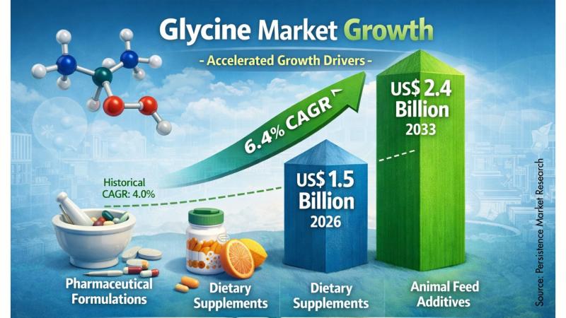 According to the latest study by Persistence Market Research, the global glycine market is projected to be valued at US$ 1.5 billion in 2026, reaching US$ 2.4 billion by 2033, growing at a CAGR of 6.4% between 2026 and 2033. Glycine, a simple amino acid, plays a crucial role across food, pharmaceutical, cosmetic, and chemical industries due to its functional versatility. As global industries increasingly shift toward bio-based and health-orientedβ¦