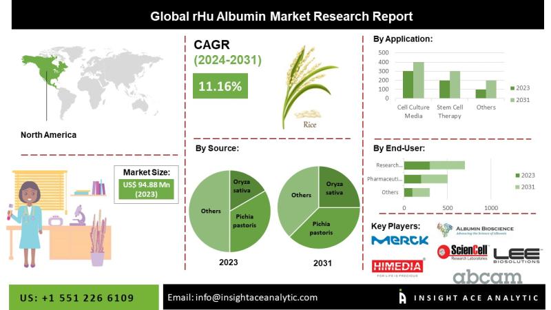 "rHu Albumin Market" in terms of revenue was estimated to be worth $94.88 million in 2023 and is poised to reach $218.56 million by 2031, growing at a CAGR of 11.16% from 2024 to 2031 according to a new report by Insight Ace Analytic.