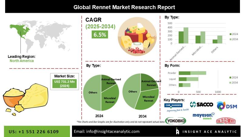 "Rennet Market" in terms of revenue was estimated to be worth $ 731.2 Mn in 2024 and is poised to reach $ 1356.2 Mn by 2034, growing at a CAGR of 6.5% from 2025 to 2034, according to a new report by Insight Ace Analytic.
