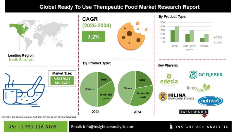 "Ready-to-Use Therapeutic Food Market" in terms of revenue was estimated to be worth $ 570.76 Million in 2024 and is poised to reach $ 1133.14 Million by 2034, growing at a CAGR of 7.2% from 2025 to 2034 according to a new report by InsightAce Analytic.