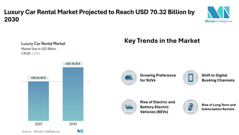 The Luxury Car Rental market [https://www.mordorintelligence.com/industry-reports/luxury-car-rental-market?utm_source=abnewswire] is valued at USD 51.82 billion in 2025 and is forecast to reach USD 70.32 billion by 2030, expanding at a 6.31% CAGR.This growth reflects rising demand for premium travel experiences, expanding digital booking adoption, and a growing population of high-net-worth…