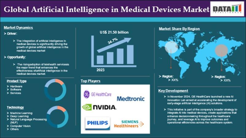 The Global Artificial Intelligence in Medical Devices Market reached US$ 21.50 billion in 2023 and is projected to reach US$ 228.98 billion by 2031, registering a CAGR of 34.7% during the forecast period 2024-2031. Intelligence-driven technologies are reshaping the medical device landscape by enabling smarter diagnostics, advanced data processing, improved patient workflows, and stronger regulatory compliance. These innovations are driving the evolution of next-generation medical devices that deliver higher accuracy,…