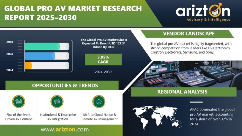 According to Arizton research, the global pro AV market [https://www.arizton.com/market-reports/pro-av-market] was valued at USD 90.00 billion in 2024 and is projected to reach USD 127.31 billion by 2030, growing at a CAGR of 5.95% during the forecast period.