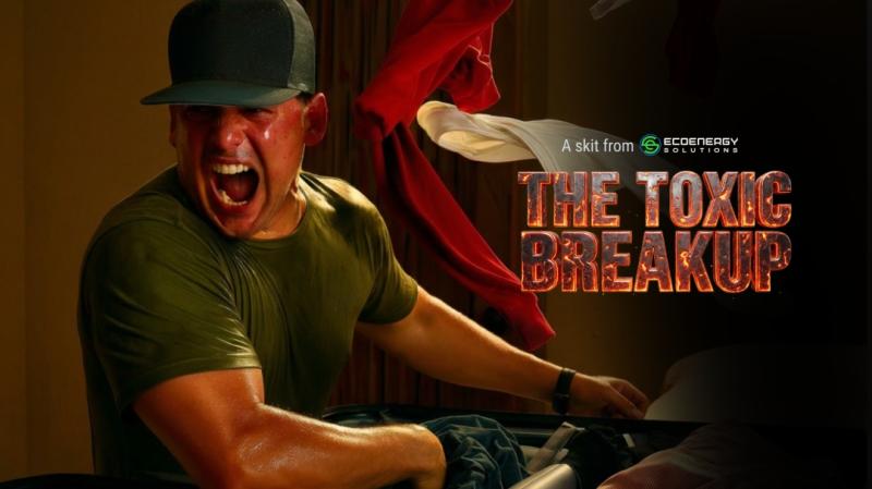 This image is from an Original Skit titled "The Toxic Breakup," is a high-drama, cinematic promotional shot that uses intense lighting and action to personify the "messy" end of a relationship with a failing AC unit