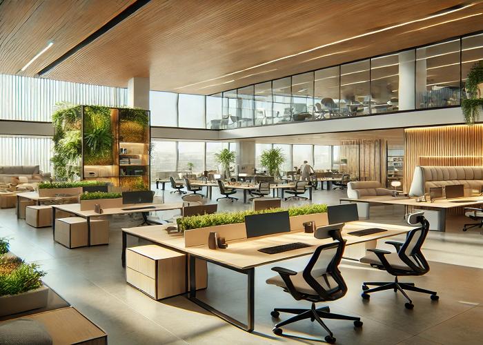 Shifting workforce dynamics (remote/hybrid work), growing need for adaptive workspaces, focus on employee well-being, and cost efficiency for businesses