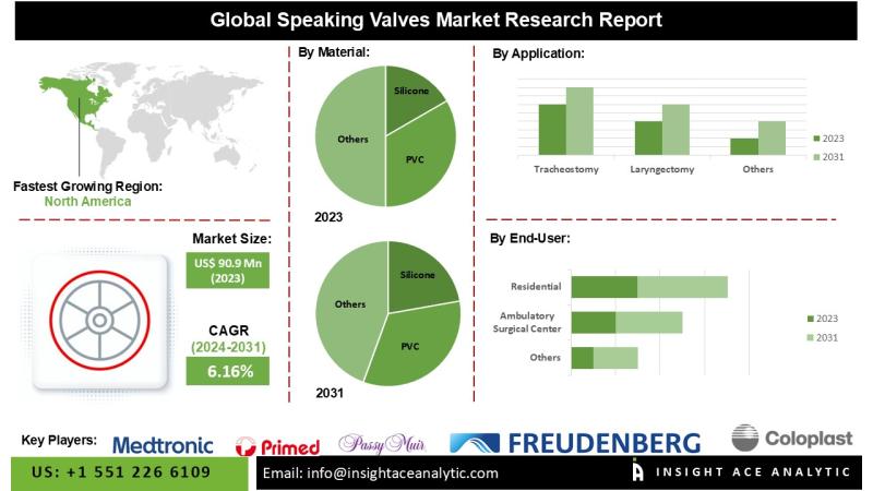 InsightAce Analytic Pvt. Ltd. announces the release of a market assessment report on the "Global Speaking Valves Market - (By Material (Silicone, PVC, Others), By Application (Tracheostomy, Laryngectomy, Others), By End-User (Hospitals, Ambulatory Surgical Center, Others)), Trends, Industry Competition Analysis, Revenue and Forecast To 2031."