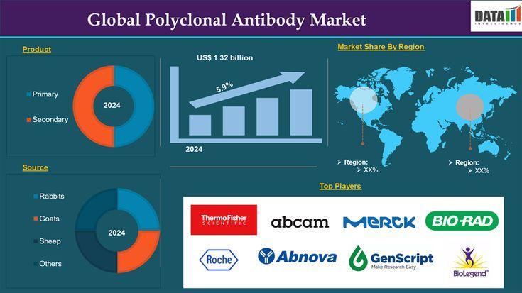 As per DataM intelligence research report "The Polyclonal Antibody Market reached US$ 1.32 billion in 2024 and is expected to reach US$ 2.17 billion by 2033, growing at a CAGR of 5.9% during the forecast period 2025-2033." Advancements in antibody production technologies, rising demand for targeted therapies, and increasing applications in research and diagnostics are fueling growth in polyclonal antibodies.
