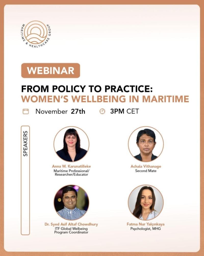 BERLIN, Germany, 19 November 2025 - Maritime & Healthcare Group (MHG), a leading organization dedicated to seafarer wellbeing, will host a landmark webinar on 27 November 2025, at 15:00 CET, titled "From Policy to Practice: Women's Wellbeing in Maritime."