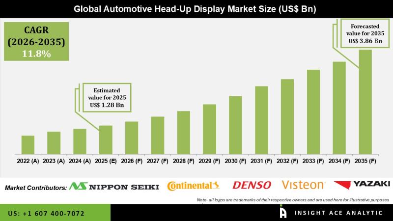 InsightAce Analytic Pvt. Ltd. announces the release of a market assessment report on the "Global Automotive Head-Up Display Market- (By Technology (Conventional HUD, Augmented Reality HUD), By HUD Type (Windshield HUD, Combiner HUD), By Dimension Type (2D HUD, 3D HUD), By Passenger Car Class (Economy Cars, Mid-segment cars, Luxury cars), By Vehicle Type (Passenger cars, Commercial Vehicles), By Electric Vehicle Type (BEVs, PHEVs, HEVs, FCEVs), By Propulsion Type (ICE Vehicles,…