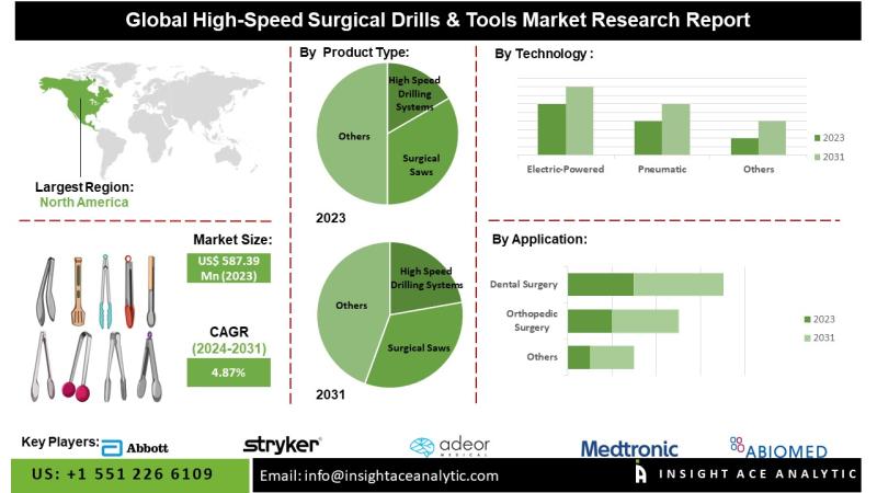 "High-Speed Surgical Drills & Tools Market" in terms of revenue was estimated to be worth USD 587.39 Million in 2023 and is poised to reach USD 848.01 Million by 2031, growing at a CAGR of 4.87% from 2024 to 2031 according to a new report by InsightAce Analytic.