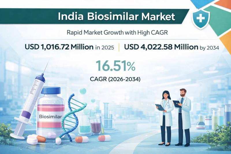 According to IMARC Group's report titled "India Biosimilar Market Size, Share, Trends and Forecast by Molecule, Indication, Manufacturing Type, and Region, 2026-2034" the report offers a comprehensive analysis of the industry, including market share, growth, trends, and regional insights.