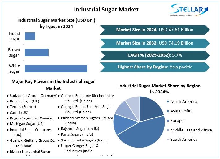 Industrial Sugar Market was valued at USD 47.61 billion in 2024. Global Industrial Sugar Market size is estimated to grow at a CAGR of 5.7 % over the forecast period.