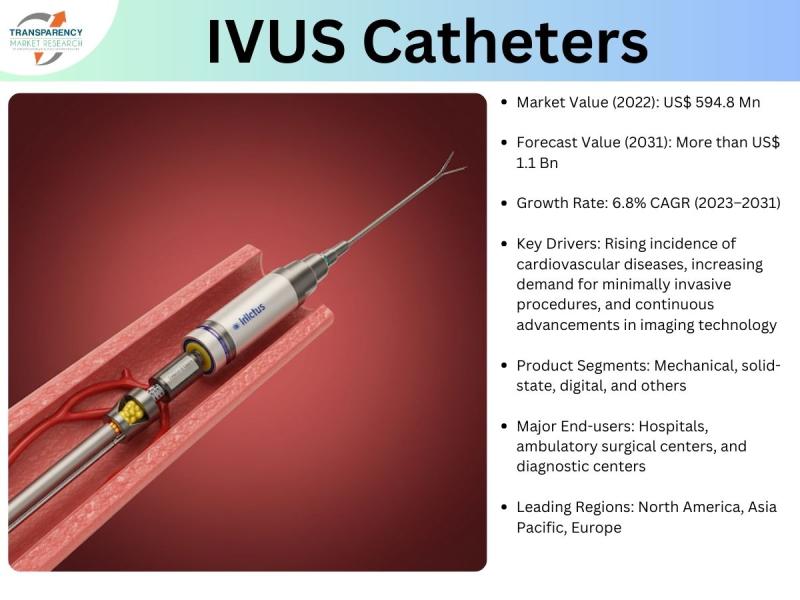 IVUS Catheters Market Revenue to Surpass USD 1.1 Billion by 2031 | Driven by Technological Advancements and Rising Cardiovascular Disease Prevalence - Exclusive Report by Transparency Market Research, Inc.
