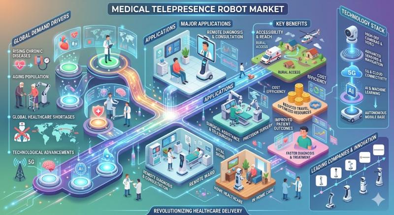The Medical Telepresence Robot Market is emerging as a transformative segment within healthcare robotics, enabling remote interaction between healthcare professionals and patients through advanced robotic systems. These robots combine video conferencing, mobility, sensors, and artificial intelligence to deliver real-time medical services without requiring physical presence. As telemedicine adoption accelerates worldwide, medical telepresence robots are becoming essential tools for improving healthcare accessibility, efficiency, and patient outcomes.