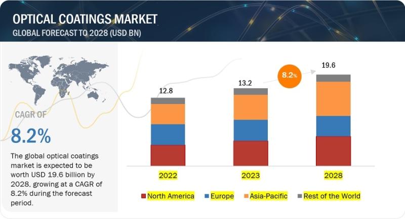 The optical coatings market is projected to grow from USD 13.2 billion in 2023 to USD 19.6 billion by 2028, at a CAGR of 8.2% during the forecast period. Optical coatings offer significant advantages in terms of cost-effectiveness, precision, and durability, making it a preferred choice in the automotive sector. In this article, we will delve into the competitive landscape, optical coatings market size [https://www.marketsandmarkets.com/Market-Reports/optical-coating-market-128999548.html?utm_source=abnewswire.com&utm_medium=referral&utm_campaign=opticalcoating], share, future growth prospects, opportunities, drivers, restraints, primary market players, current trends, and regional insights of the optical coatings market.