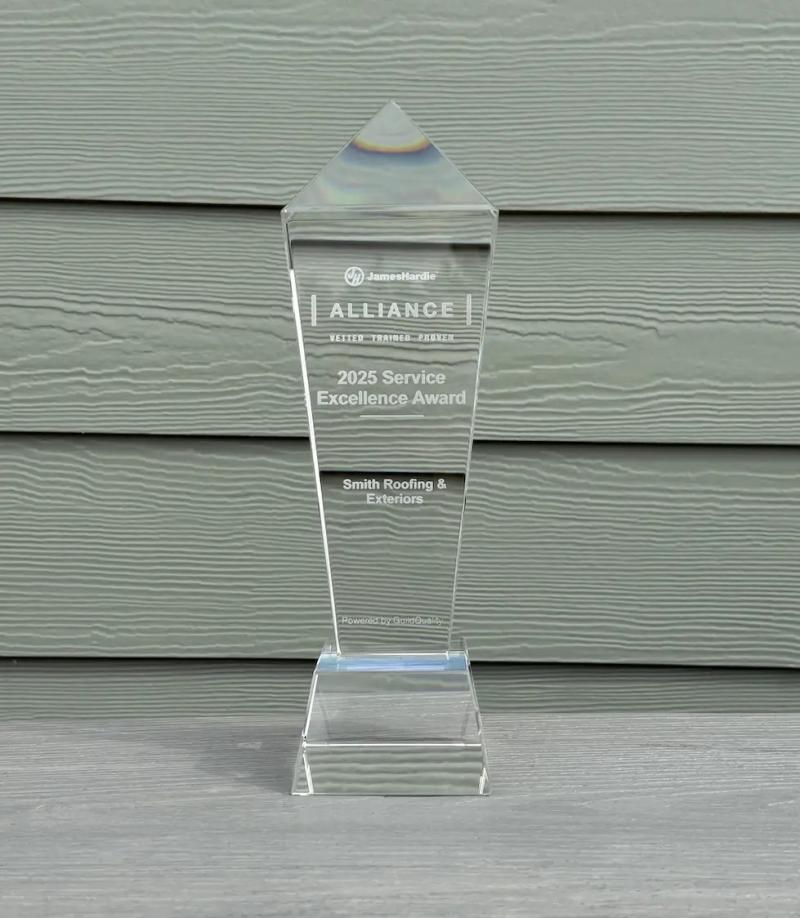 KNOXVILLE, TN - Smith Roofing & Exteriors is proud to announce being honored with the 2025 James Hardie Service Excellence Award. This elite distinction was awarded to only 30 siding installation contractors across the United States. Smith Roofing and Exteriors is the sole recipient in Knoxville and the only contractor in Tennessee to earn this recognition in 2025.