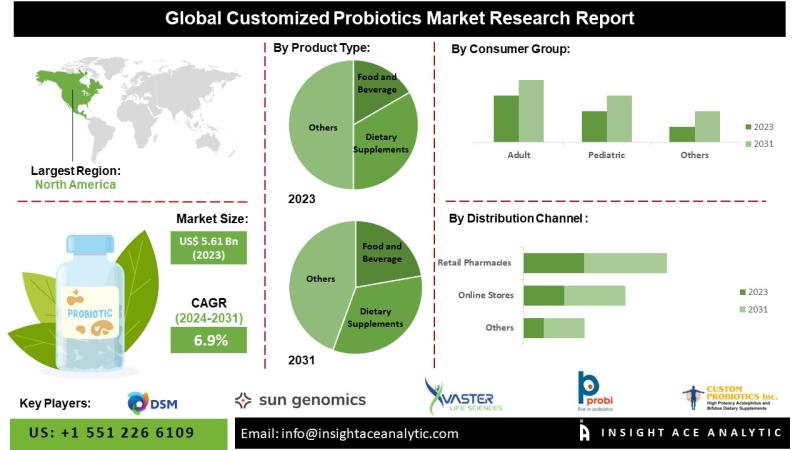 InsightAce Analytic Pvt. Ltd. announces the release of a market assessment report on the "Global Customized Probiotics Market - (By Product Type (Food and Beverage, Dietary Supplements), Consumer Group (Adult, Pediatric), Distribution Channel (Online Stores, Retail Pharmacies)), Trends, Industry Competition Analysis, Revenue and Forecast To 2034."