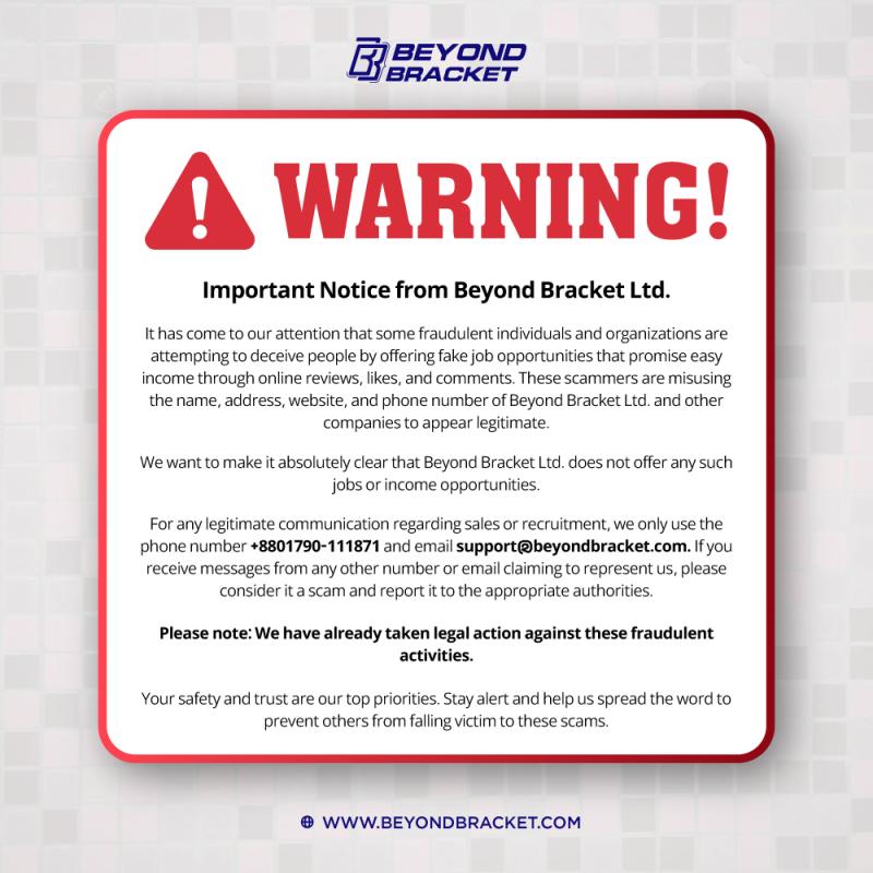 "We want to make it absolutely clear that Beyond Bracket has no association with such offers," said Samsuzzaman Riton, CEO of Beyond Bracket. Our recruitment process is transparent and only conducted through our verified communication channels."