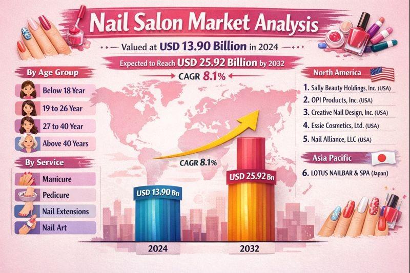 Nail Salon Market to Reach USD 25.92 Billion by 2032, Growing at a CAGR of 8.1%