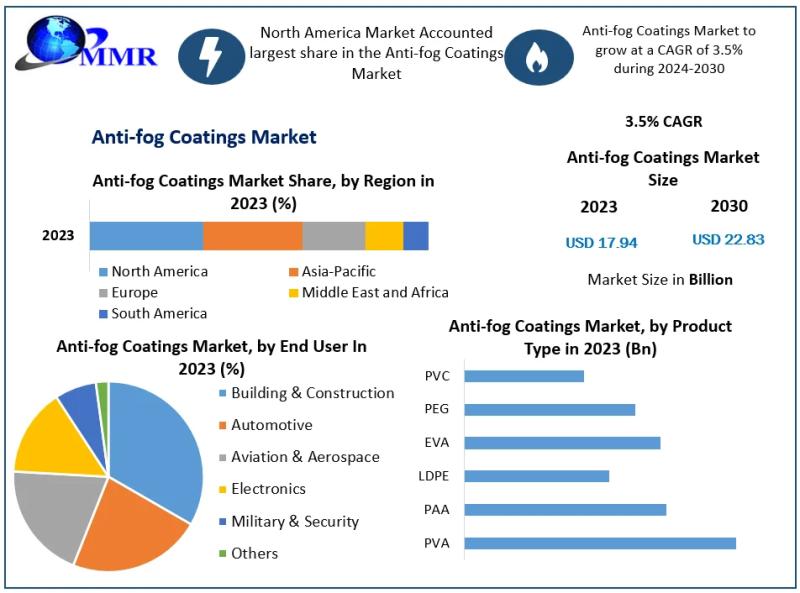 Anti-Fog Coatings Market to Reach USD 22.83 Billion by 2030, Growing at a CAGR of 3.5% from USD 17.94 Billion in 2023.