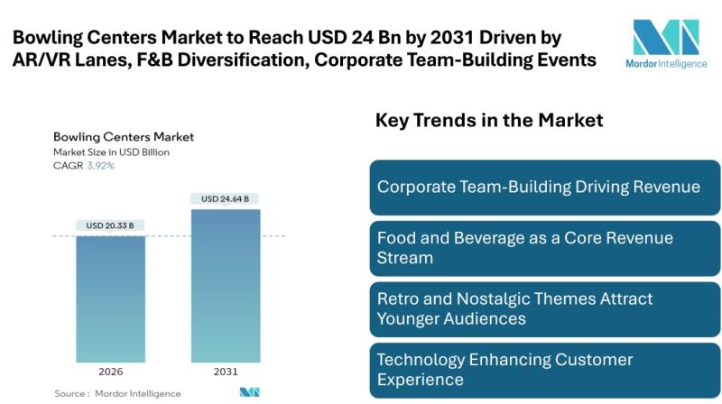 According to Mordor Intelligence, the bowling centers market size [https://www.mordorintelligence.com/industry-reports/bowling-centers-market?utm_source=abnewswire] is projected to reach around USD 20.33 billion in 2026, up from USD 19.56 billion in 2025, and is expected to grow to USD 24.64 billion by 2031, at a CAGR of 3.92%. Growth is…