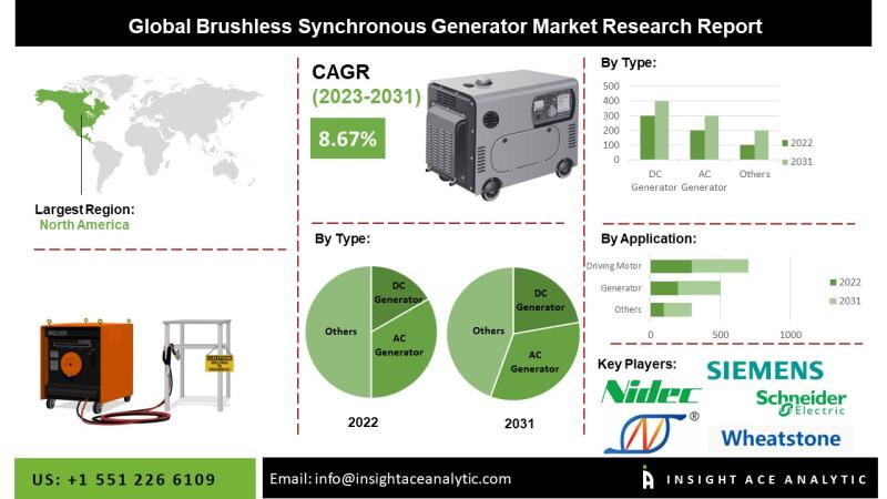 InsightAce Analytic Pvt. Ltd. announces the release of a market assessment report on the "Global Brushless Synchronous Generator Market Size, Share & Trends Analysis Report By Type (DC Generator, AC Generator), By Power Rating (Below 350 kVA, 350-1,000 kVA, Above 1,000 kVA), By Application (Generator, Driving Motor, Wind Turbines, Rail, Marine, Industrial Motors, Others), By End-Use Industry (Residential, Commercial, Industrial, Utilities), By Cooling Method (Air Cooled, Hydrogen Cooled, Water Cooled),…