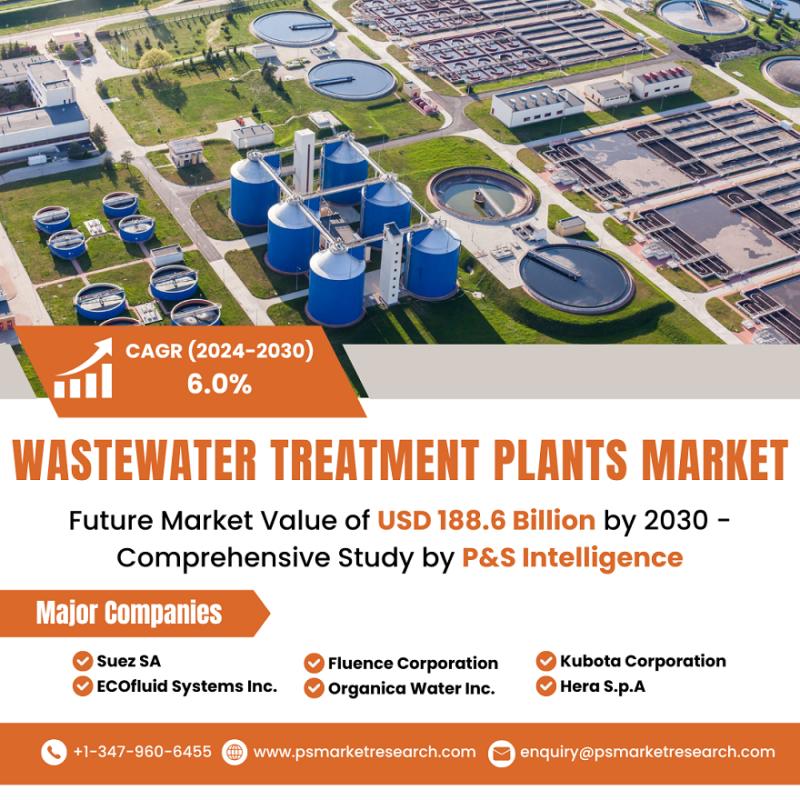 According to the latest market research study published by P&S Intelligence, the global wastewater treatment plants market is projected to generate an estimated revenue of USD 132.6 billion in 2024 and is anticipated to grow at a compound annual growth rate (CAGR) of 6.0%, reaching USD 188.6 billion by 2030. This growth is primarily driven by the limited availability of freshwater resources and stringent environmental regulations implemented by governments worldwide. Over the past century, global freshwater use has increased sixfold, while the availability of freshwater for human consumption has been steadily decreasing.Consequently, treating wastewater for reuse in activities such as manufacturing and agriculture has become imperative. To address water scarcity, numerous international frameworks on wastewater management have been adopted, including principles of preventive action and precautionary measures to protect transboundary watercourses from pollution. Additionally, national governments have implemented regulations regarding wastewater discharge into water bodies. For instance, the U.S. enforces specific effluent treatment and discharge guidelines for various industries under the Clean Water Act.