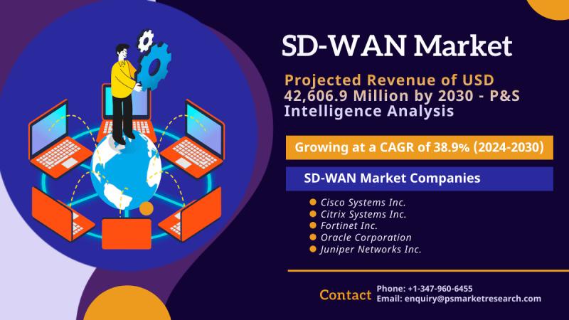 According to the latest market research study published by P&S Intelligence, the global software-defined wide area network (SD-WAN) market is witnessing extraordinary momentum, with its size valued at $4,287.4 million in 2023. This robust growth trajectory is expected to persist, as the market is projected to surge to $42,606.9 million by 2030, registering a remarkable CAGR of 38.9% between 2024 and 2030. The escalating shift from traditional WAN solutions toward modern, cloud-integrated SD-WAN systems is a primary catalyst behind this expansion.Organizations worldwide are embracing digital transformation at scale, investing heavily in cloud computing technologies and centralized network infrastructure. This shift is spurred by the growing awareness of cybersecurity risks, a need for dynamic application performance, and increasing pressure to streamline multi-branch connectivity across distributed networks. Enterprises are opting for SD-WAN to address these challenges effectively, given its ability to deliver enhanced security, scalability, and cost-efficiency.