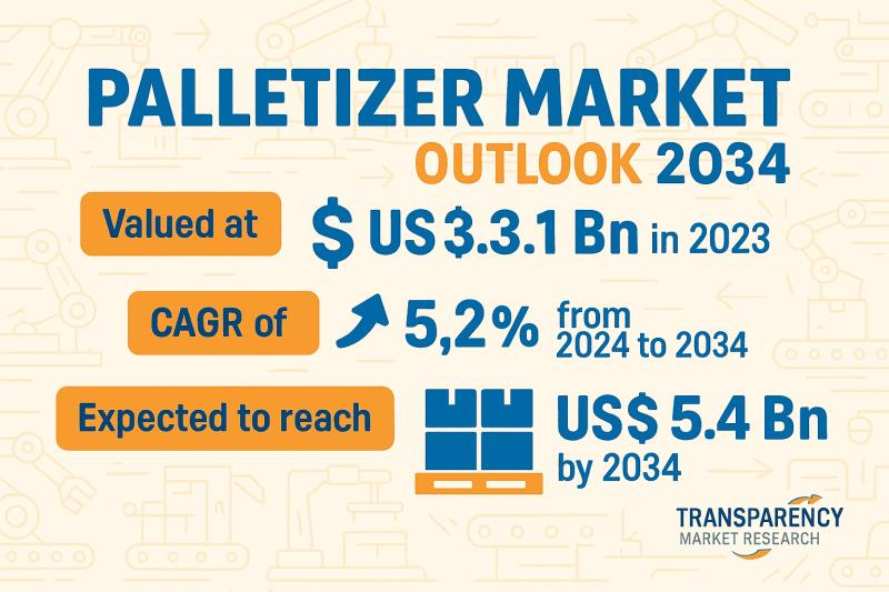 Palletizer Market Revenue to Reach USD 5.4 Billion by 2034, Driven by E-commerce Expansion and Increased Shipment Volume - Exclusive Report by Transparency Market Research