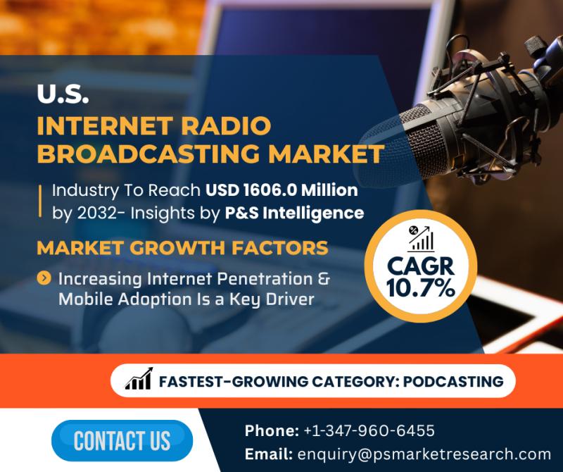 According to the latest market research study published by P&S Intelligence, the U.S. internet radio broadcasting market is poised for remarkable growth, projected to surge from USD 720.1 million in 2024 to USD 1,606.0 million by 2032, reflecting a robust CAGR of 10.7%. This surge is being driven by the rising consumer preference for personalized audio experiences and the expansion of digital broadcasting infrastructure. With more than 300 million internet users and over 95% smartphone penetration in the U.S., internet radio is becoming a mainstream entertainment channel across all demographics.As consumers increasingly shift from traditional media to digital alternatives, internet radio is stepping up with tailored content, seamless accessibility, and diverse programming. From podcasts to live streaming radio and on-demand music, internet radio platforms are leveraging advanced connectivity, such as 5G, and AI-powered recommendations to meet the changing demands of users. This dynamic ecosystem is also fostering innovative advertising opportunities, allowing businesses to target segmented audiences more effectively.