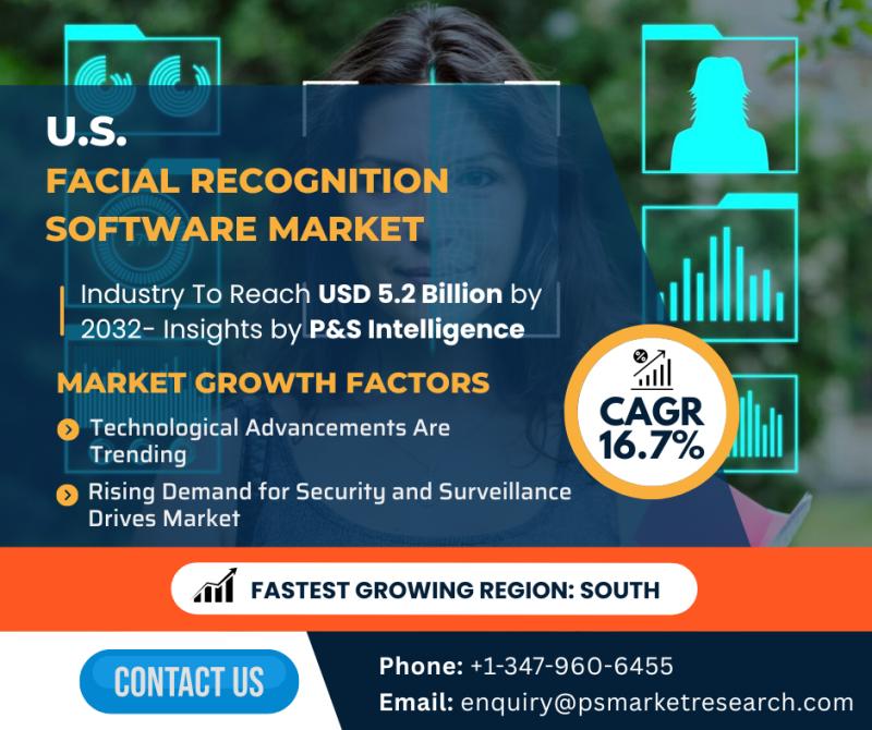 According to the latest market research study published by P&S Intelligence, the U.S. facial recognition software market is experiencing rapid growth, with its value projected to surge from USD 1.5 billion in 2024 to an impressive USD 5.2 billion by 2032, advancing at a CAGR of 16.7% during the forecast period. This dynamic expansion is largely driven by the increasing adoption of biometric authentication technologies across diverse sectors, including law enforcement, retail, banking, healthcare, and smart city development.A major catalyst for this growth is the advancement of artificial intelligence (AI), machine learning (ML), and deep learning algorithms, which are significantly enhancing the accuracy and efficiency of facial recognition systems. The post-pandemic emphasis on contactless identification has further accelerated the demand for such technologies. Government departments, particularly in defense and homeland security, are leveraging facial recognition for identity verification and criminal investigations, while private enterprises utilize it for fraud prevention and personalized user experiences.