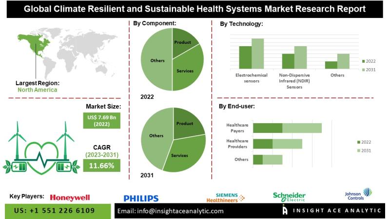 InsightAce Analytic Pvt. Ltd. announces the release of a market assessment report on the "Global Climate Resilient and Sustainable Health Systems Market - (By Component (Product, Services Implementation Services, Training Services, Support & Maintenance Services, Consulting Services, Integration Services), By Technology (Electrochemical sensors, Non-Dispersive Infrared (NDIR) Sensors, Metal Oxide Semiconductor (MOS) Sensors), By End-User (Healthcare Providers, Healthcare Payers)), Trends, Industry Competition Analysis, Revenue and Forecast To 2034."