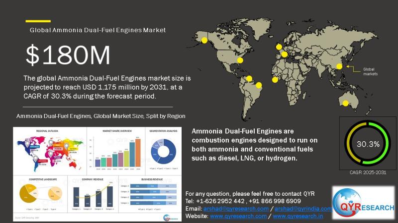 NEW YORK, (UNITED STATES) - QY Research announces the release of 2025 latest report "Ammonia Dual-Fuel Engines Market". Based on current situation and impact historical analysis (2020-2024) and forecast calculations (2025-2031), this report provides a comprehensive analysis of the global Ammonia Dual-Fuel Engines market, including market size, share, demand, industry development status, and forecasts for the next few years.In Details | Download Exclusive Research Report PDF Sample: (Including Full TOC, List of Tables & Figures, Chart) @ https://qyresearch.in/request-sample/pharma-healthcare-ammonia-dual-fuel-engines-global-sales-forecast-competitive-landscape-2025-2031