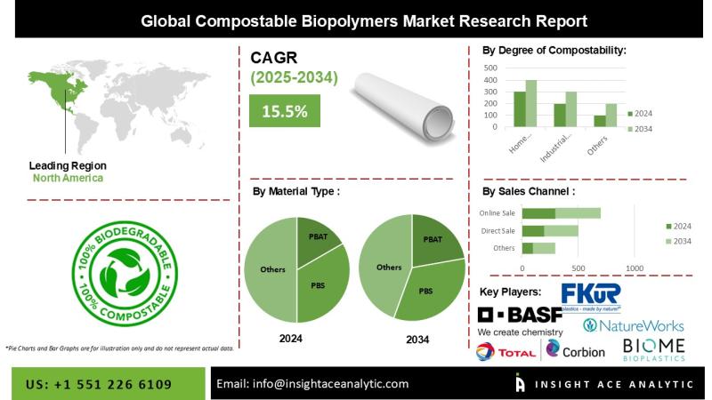 InsightAce Analytic Pvt. Ltd. announces the release of a market assessment report on the "Global Compostable Biopolymers Market Size, Share & Trends Analysis Report By Material Type [Polybutylene Succinate (PBS), Polylactic Acid (PLA), Starch Blends, Cellulose Films, and Others], By Degree of Compostability (home compostable and industrial compostable), By Sales Channel (direct sales, online sales, and distributors), By End-Use (food packaging, disposable cutlery, bags, mulch films, agricultural applications) - Market…