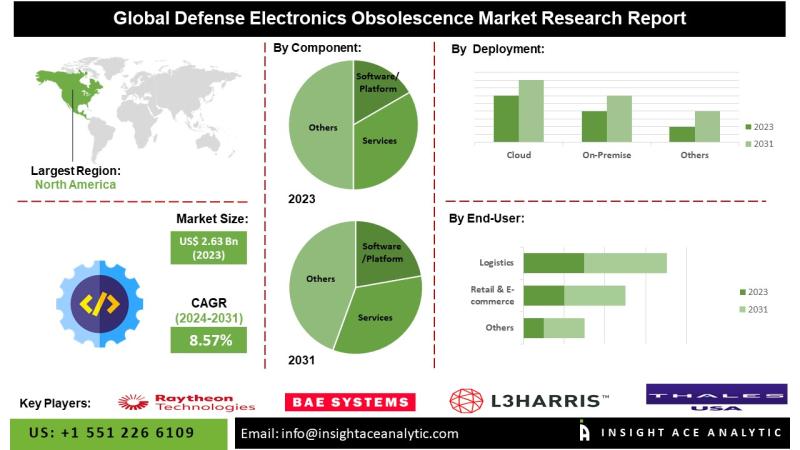 InsightAce Analytic Pvt. Ltd. announces the release of a market assessment report on the "Global Defense Electronics Obsolescence Market - (by System (Communication System; Navigation System; Human Machine Interface; Flight Control System; Targeting System; Electronic Warfare System; and Sensors), By Platform (Land, Naval, Airborne), Type (Logistics Obsolescence, Functional Obsolescence, Technology Obsolescence)), Trends, Industry Competition Analysis, Revenue and Forecast To 2031."