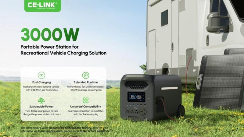 Image: https://www.abnewswire.com/upload/2025/04/62b074bd622d3936f21eb961098cf4fe.jpgFor RV owners and outdoor enthusiasts, a reliable off-grid power solution is essential, and CE-LINK RV power solutions offer a powerful, environmentally friendly, and efficient way to keep everything running smoothly-whether you're on the road, camping in remote areas, or just enjoying the off-grid lifestyle. Combining a high-performance 3000W portable power station with two 400W solar panels, this power solution provides RV enthusiasts with a hassle-free adventure.