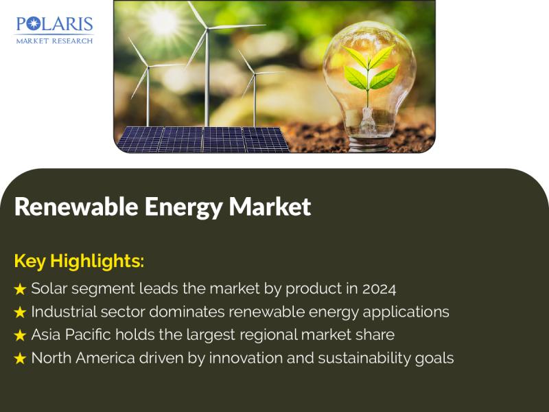 Polaris Market Research recently introduced the latest update on Renewable Energy Market that provides an extensive outlook of the market, analyzing key growth opportunities, challenges, risk factors, and emerging trends across diverse geographic regions. The report offers a definitive and meticulous analysis of the Renewable Energy market size, share, demand, key growth factors, segmentation, country-level overview, and forecast.